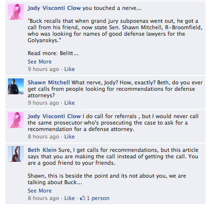 According to the original report, Buck was contacted by now-state Sen. Shawn Mitchell, allegedly asking for “recommendations” for a good defense attorney for Greg Golyansky. Now, the first thing you’ll find kind of odd here is the idea that a Republican politician (or anyone, for that matter) would call someone who works in the prosecuting attorney’s office, for help finding a defense attorney against a case that same office is prosecuting. That’s a little like asking the opposing team’s coach to help with your playbook, isn’t it? Regardless, Mitchell apparently conveyed Buck’s recommendation of a certain attorney back to Golyansky, and Stephen Peters was retained.