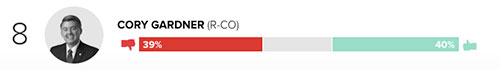 Morning Consult is out today with its quarterly update of the latest approval ratings for each United States Senator, and our own Sen. Cory Gardner (R-Yuma) is nearly upside-down in the approval department. With an “approval” rating of just 40% and a “disapproval” rating of 39%, Gardner qualifies as the 8th-most disliked Senator in the United States.