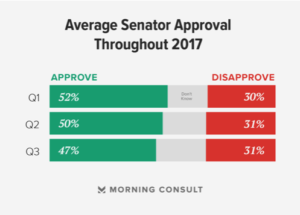 The most dramatic swings in approval came for Republican Sens. Shelley Moore Capito (W.Va.) and Sen. Cory Gardner (Colo.). Their net rankings both went down 18 percentage points.
