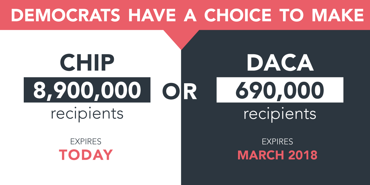 Leading up to the shutdown of the federal government at midnight Friday, Republicans had offered Democrats a “choice”–between funding the Children’s Health Insurance Program and a solution for the approximately 700,000 undocumented immigrants who came to the country as children and soon face deportation. This choice was depicted in harsh, controversial terms by Senate Majority Leader Mitch McConnell in a social media graphic: