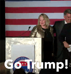On election night…have you seen the clip, where I say, “Go Trump!” at the podium? Oh my gosh. Right now, Colorado Pols – the Democrat blog, if you can call it that – plays that thing like, every week. They put me up there saying, “Go Trump!” [Pols emphasis]