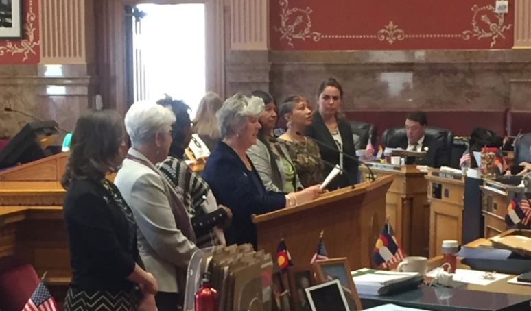 Every woman Democratic senator is on the floor of the Senate calling on GOP leaders to introduce their resolution calling for @CapitalCowboy Baumgardner’s expulsion. #coleg