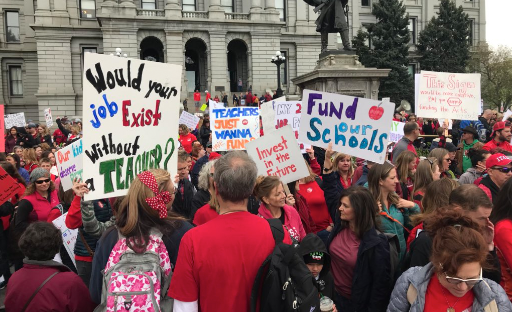 As the Denver Post’s Monte Whaley reports, Colorado public school teachers are out in force at the Capitol today and tomorrow, joining teachers in other states in calling for better funding for education and a better deal for themselves, too: