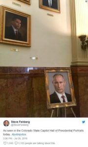 State Senate President Kevin Grantham (R-Canon City) said last month he quickly raised $10,000 for the Trump picture in the wake of news coverage of a stunt involving the placement of a Putin portrait on the wall inside the Capitol where Trump’s picture would hang.