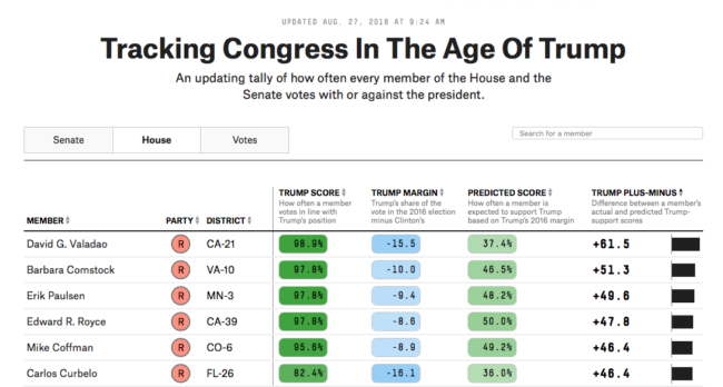 In July 2016 Coffman made national news after running a television ad in which he promised to “stand up to Trump” if the Republican nominee made it through the General Election. It didn’t take long for Coffman to shift his position; Coffman votes with Trump an astounding 95.6% of the time: