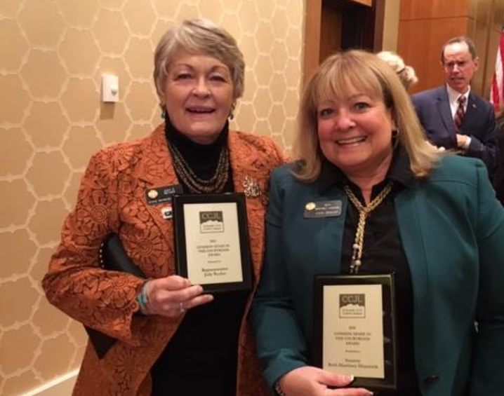 As photographed above from yesterday’s awards luncheon for the right-wing Colorado Civil Justice League, the lobby group set up to make it as difficult as possible for little people (that’s most of you) to exercise their legal rights. On the right is GOP Sen. Beth Martinez Humenik, the #1 target in the Colorado Senate for Democrats hoping to retake control of the chamber in the 2018 elections.