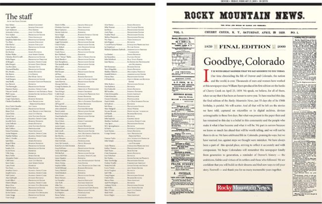 Today is the 10th anniversary of the final edition of the Rocky Mountain News. At the time of its demise, the News featured what we believed at the time to be the finest political newsroom in the state.