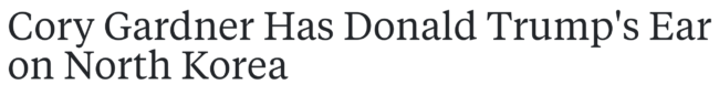 Colorado Sen. Cory Gardner (R-Yuma), who fancies himself to be an expert on North Korea but generally takes his cues from the President, issued a lengthy nothingburger statement following the end of the latest round of “negotiations.” Remember this headline from The Weekly Standard a little more than a year ago: