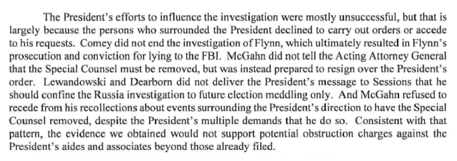 UPDATE: A key portion of the report appears to acknowledge that President Donald Trump attempted to obstruct justice, but was prevented from doing so by subordinates who refused to break the law: