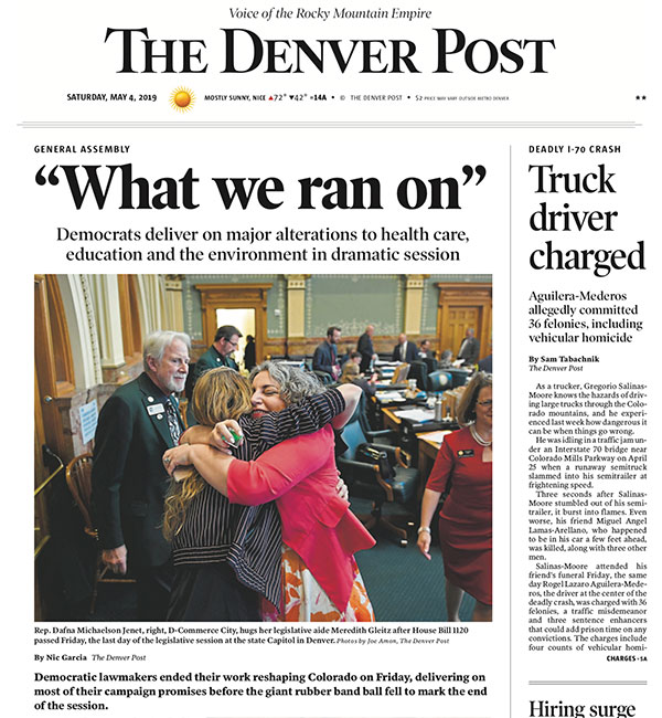► The 2019 Colorado legislative session came to a close on Friday, which means it’s recap time for media outlets across the state. Saturday’s Denver Post summarized the legislative session with a pretty straightforward message from Colorado Democrats. From Nic Garcia of the Post: