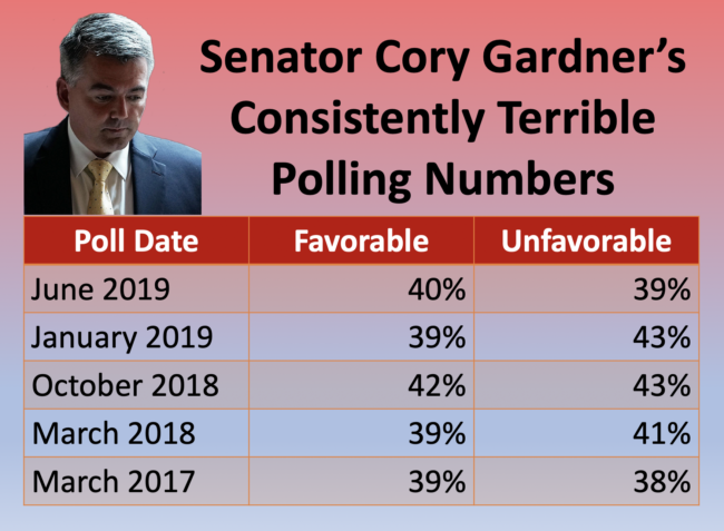 Yes, we have a long time to go until the November 2020 election. Yes, a lot can change. But Gardner should be very concerned about what appears to be a solid ceiling in Colorado.