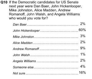 These numbers validate Johnston’s message from his announcement on Tuesday that he was departing the race for Senate. Hickenlooper is so well-known and so well-liked among average Democratic voters in Colorado that it would take a significant amount of money and negative messaging to move the needle enough to even be competitive in a June Primary.
