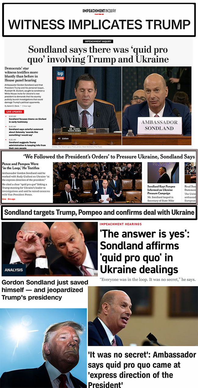 Ambassador to the EU Gordon Sondland is testifying publicly today in the impeachment hearings against President Trump, and he’s slamming the door shut on Trump’s defense. Read all about it at The Washington Post, The New York Times, CNN, NBC News, Politico…