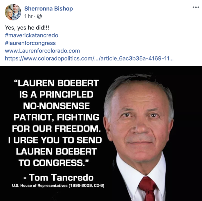 Ernest Luning at the Colorado Springs Gazette reports, the CD-3 Republican primary heats up with the announcement that former Republican congressman, presidential candidate, and fringe-right gadfly extraordinaire Tom Tancredo is throwing his weight behind upstart primary challenger Lauren Boebert: