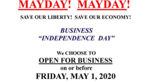 A MayDay-Colorado flyer available for download states: “Business Independence Day” and “MAYDAY! MAYDAY! Save our Liberty. Save our Economy.”
