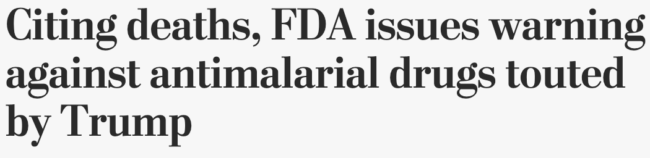 Trump has been promoting hydroxychloroquine, typically a drug used to treat malaria, for several weeks, often attaching the phrase “What do you have to lose?” to his suggestion. As it turns out, you have quite a bit to lose from taking hydroxychloroquine as a coronavirus treatment: YOUR LIFE.