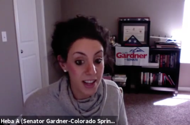Here’s a screen shot we were forwarded of one Heba Abdelaal, a legislative aide for Sen. Cory Gardner, on a call with the Colorado Counties, Inc. earlier this month. This image was taken from an update from Sen. Gardner’s official-side legislative staff about official stuff.