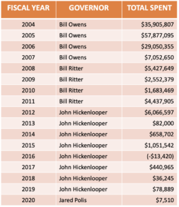 Seven years after Colorado received the recovery funds, former Denver Mayor John Hickenlooper took office as governor. He began using the remaining funds, which amounted to about $10 million, to pay for an array of expenses that have no apparent nexus to essential government services.