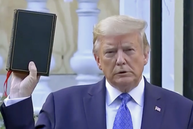 As we all know, President Trump loves the Bible so much that he can read it upside down and backward: