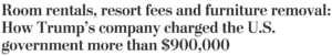 Now, new federal spending documents obtained by The Post via a public-records lawsuit give more detail about how the Trump Organization charged the Secret Service — a kind of captive customer, required to follow Trump everywhere. In addition to the rentals at Mar-a-Lago, the documents show that the Trump Organization charged daily “resort fees” to Secret Service agents guarding Vice President Pence in Las Vegas and in another instance asked agents to pay a $1,300 “furniture removal charge” during a presidential visit to a Trump resort in Scotland.