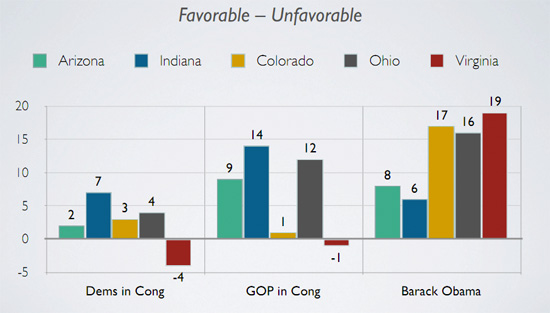 Turning to elected officials, the poll shows very good favorables for both Colorado Sens. Mark Udall and Michael Bennet, and a 17-point net favorable rating for President Barack Obama. The favorables for both Senators and the President are significantly higher than Congress, though Colorado bucks the poll’s trend of preferring GOP representatives to Democrats.