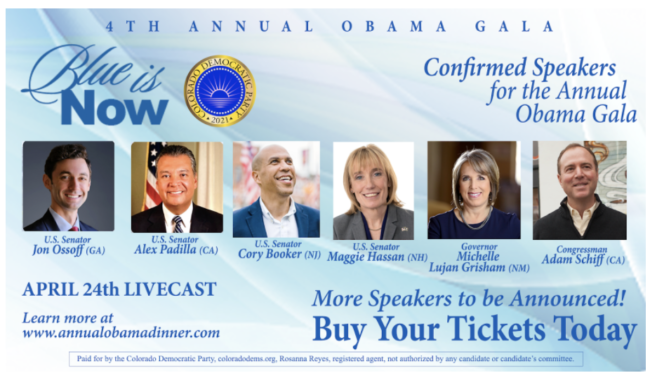 ► Colorado Democrats continue to add speakers to the Annual Obama Gala event on April 24: