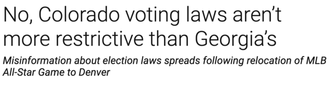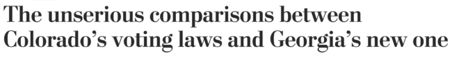 Republicans are making a concerted effort to spin a completely false narrative that Colorado’s election laws are actually MORE restrictive than in Georgia. The blowback from local and national media outlets has been swift.