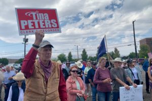 “One thing you have heard about Tina Peters is true,” said Cory Anderson, who heads the local chapter of the Election Integrity Project, which has been trying to use voter canvassing to prove fraud. “There was a before and after image taken of the Dominion system in clerk Peter’s office. I think we’ll be very glad that happened. Preserving the truth is important to discovering the truth.”