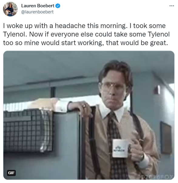 “I woke up with a headache this morning. I took some Tylenol. Now if everyone else could take some Tylenol too so mine would start working, that would be great,” she wrote.