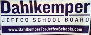 We particularly like that Dahlkemper doesn’t get into the details of which “district” she is running to represent. This is a common mistake that drives us nuts — 9 out of 10 voters have no idea what “number” district they live in, be it legislative, city council, school board or congressional seat. Voters don’t need to know the number of their district, anyway, so why bother with putting it on a sign? Dahlkemper’s approach is perfect: “Jeffco School Board.” Voters don’t need to know more than that from the sign.