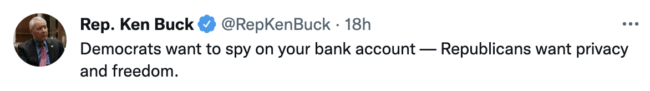 Congressman Ken Buck (R-Greeley) is basically just a well-paid right-wing troll at this point in his career: