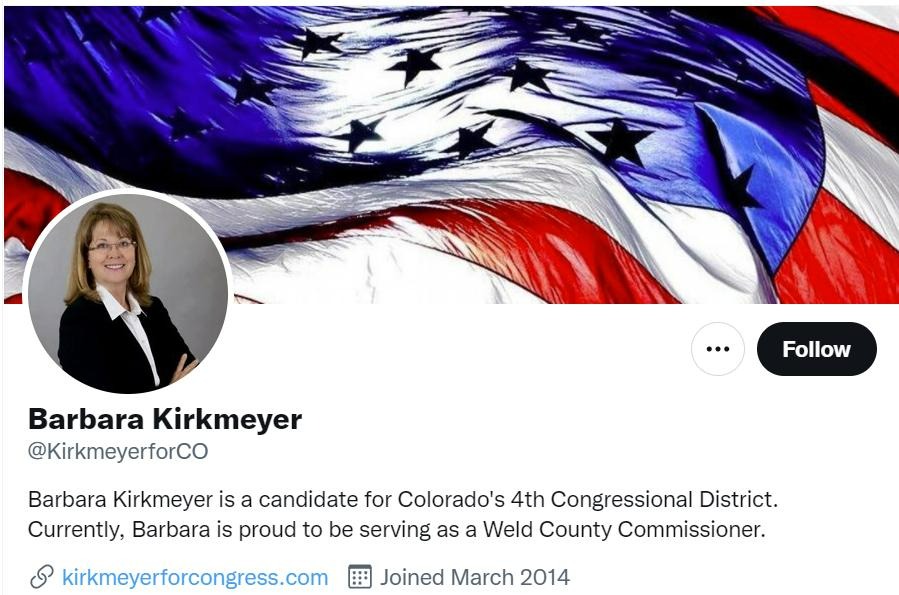 Be assured that Kirkmeyer is running in CD-8, despite what her Twitter profile says: