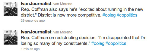 UPDATE #4: AP’s Ivan Moreno Tweets initial reaction from newly-vulnerable Rep. Mike Coffman:
