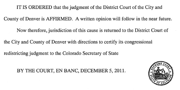 The state Supreme Court Monday upheld the ruling of Denver District Judge Robert Hyatt, who ruled last month in favor of a Democratic map that, most importantly, made a long-time safe GOP seat — the Sixth C.D. — a toss-up.