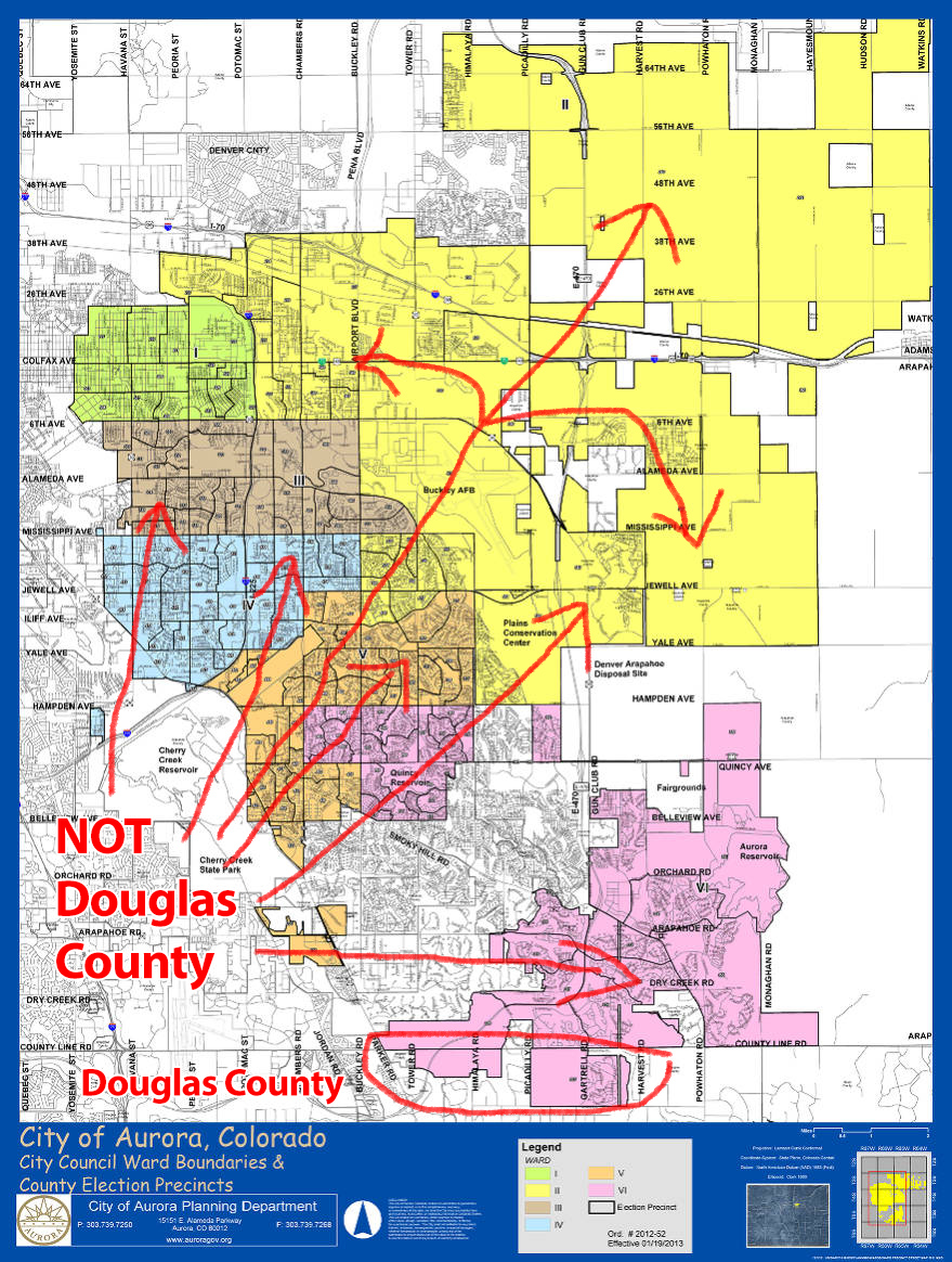 Understand this clearly: the Republican members of the Aurora City Council are arguing that because a portion of their city is located in Douglas County, there should be no mask mandate in the areas of the city located in Adams and Arapahoe Counties in order to promote “consistency.” The problem? Look at a map of Aurora: