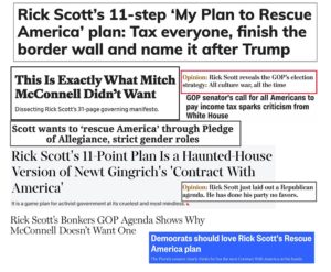 You can see, then, why it was such a big problem on Tuesday when Florida Republican Sen. Rick Scott — the Chairman of the National Republican Senatorial Committee (NRSC) — decided to release an 11-step policy plan for the GOP that is downright bonkers.