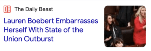 Iowa Gov. Kim Reynolds delivered the official Republican response following Biden’s SOTU speech, but Boebert effectively hijacked the GOP message for the night with her embarrassing antics. Chris Cillizza of CNN called Boebert’s outburst “the single most memorable moment” of the SOTU speech…and he didn’t mean that as a compliment.