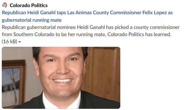 We wrote and updated at length on Thursday as yet another stupendous uncontained public relations failure played out in Republican gubernatorial nominee Hiedi Heidi Ganahl’s campaign. After announcing to multiple radio outlets that she would make her selection for lieutenant governor public Thursday, saying “he’s a great Hispanic leader from rural Colorado,” word of Las Animas County Commissioner Felix Lopex’s selection went around with enough certainty that the Colorado Springs Gazette’s political blog broke the story: