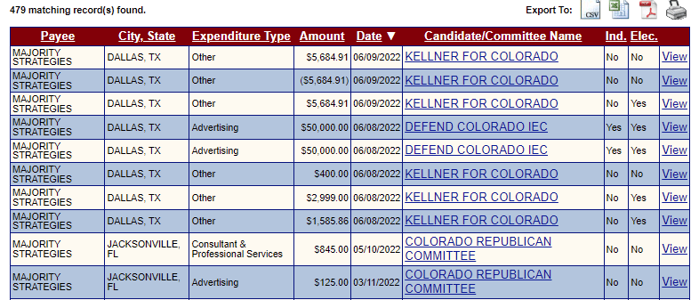 Majority Strategies’ relationship with the Colorado GOP goes back to at least 2008, with hundreds of records of expenditures as well as payments by Majority Strategies to Colorado Republican committees. Former Senate President Bill Cadman, whose “side business” as a campaign consultant prospered handsomely during his leadership tenure, regularly used Majority Strategies as a vendor.