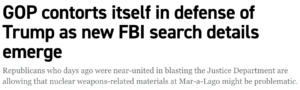 As new information emerged about the circumstances behind the FBI search, the contrast grew starker between Republicans advancing a knee-jerk defense of the former president and those who are simply calling for additional disclosures from DOJ.