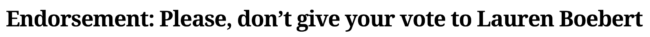 [mantra-pullquote align=”right” textalign=”left” width=”40%”]“We beg voters in western and southern Colorado not to give Rep. Lauren Boebert their vote.”