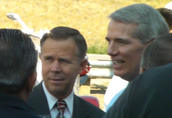 GOP CD-2 nominee Kevin Lundberg and Sen. Rob Portman (R-Ohio) at the Romney bus tour stop in Johnson’s Corner. Anonymous photo