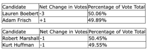Also on Monday, the SOS office announced the results of two recounts — in CO-03 and HD-43 — that predictably ended up making no meaningful change to the final results.