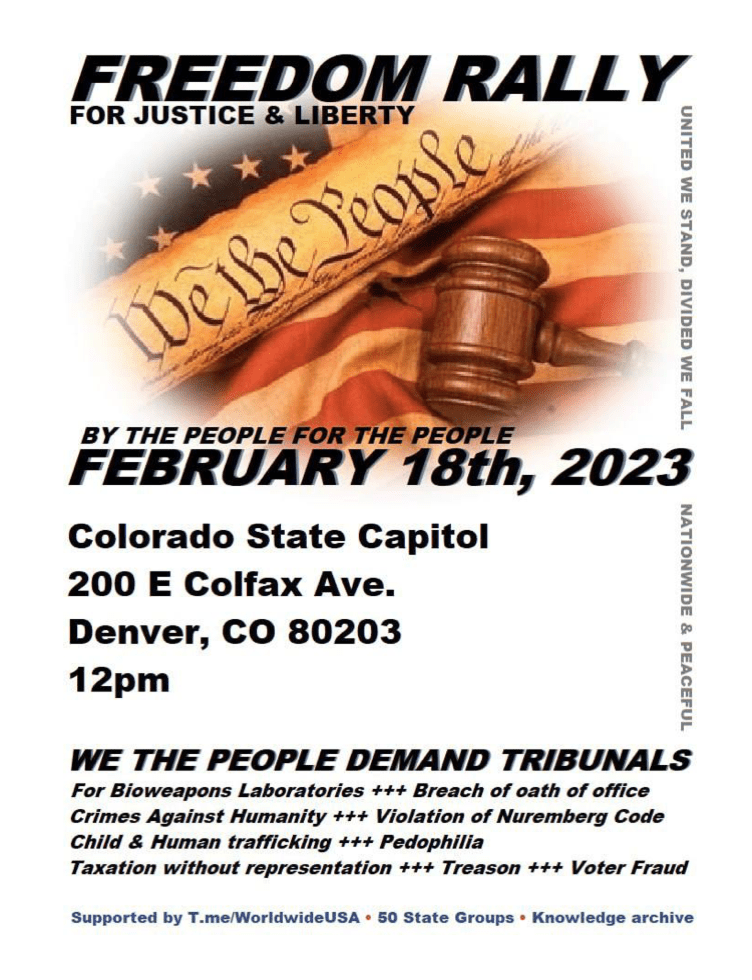 But we’re dutybound to advise potential visitors to the Colorado Capitol this coming Saturday at noon that some of the most hardcore of the hardcore nether-right conspiracy set will be out in…well, we can’t say for sure they’ll be out in force, but in some quantity: