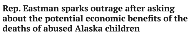 ► Alaska Republican Rep. David Eastman has already earned one of the worst headlines of the year: