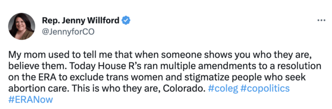 It is both disgusting and infuriating to watch House Republicans turn a discussion about the Equal Rights Amendment into an extended diatribe about abortion, guns, transgender athletes, and whatever the hell DeGraaf is talking about. But the real harm here is to Colorado Republicans in general.