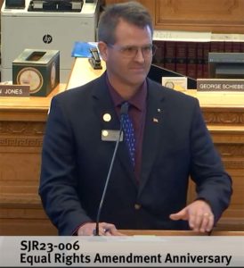 Senate Joint Resolution 23-006 is the Colorado legislature’s effort to prod Congress toward approving the Equal Rights Amendment (ERA), which would guarantee equal rights for all American citizens regardless of sex. What should have been a fairly straightforward discussion devolved into all sorts of ridiculous nonsense, led again by “The Unambigiously Lame Duo” of Republican Reps. Scott “There is No” Bottoms and Ken “Skin” DeGraaf. There were plenty of other Republicans rushing to the podium to air their grievances, including Reps. Richard Holtorf, Stephanie Luck, and Brandi Bradley. Once again, House Minority “Leader” Mike Lynch was apparently fine with letting his caucus elaborate at length on why Colorado voters should never, under any circumstances, allow these people to be in charge of anything.