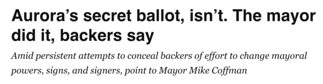 The end result of all this sloppy subterfuge has been to raise the antennae of Aurora voters in questioning the true motives of its elected Mayor. Should the opposition campaign succeed in its lawsuit, that will likely put the ballot measure issue to bed.