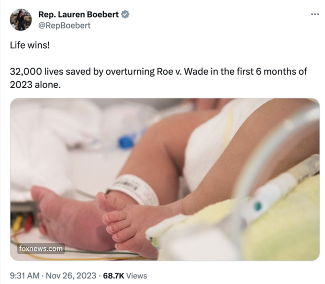 Obviously, there could be any number of reasons why birth rates rose a measly two percent in certain states. Regardless of the “science,” this statement from Boebert just makes it easier for likely Democratic opponent Adam Frisch to point out Boebert’s firm support for overturning Roe v. Wade…as does Boebert’s inexplicable continued support for a national abortion ban.