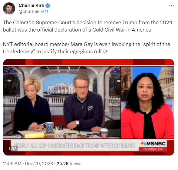 With all of this in mind, let’s take a look at some of the backlash we’re seeing from the right against Colorado from yesterday’s ruling: